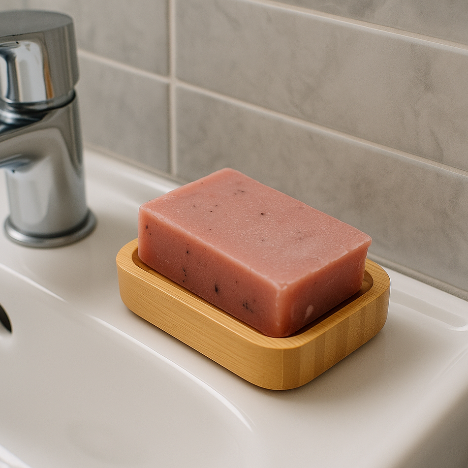 Al terminar de usar tu pastilla de jabón, colócala sobre la jabonera de bambú. Gracias a su base perforada favorece la circulación del aire y el jabón o champú sólido se seca mejor.